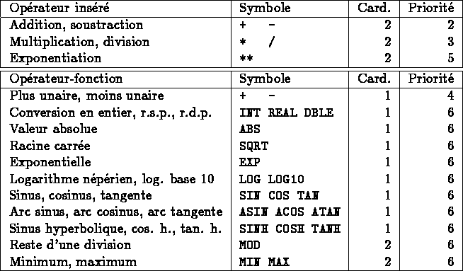 - Si deux opérateurs-fonctions ont des priorités égales,
