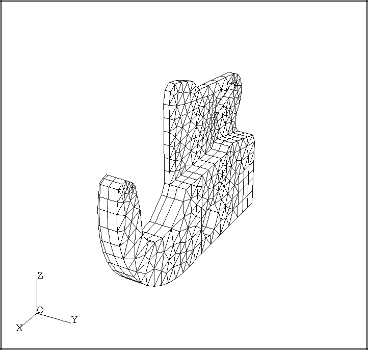 La géométrie du problème modèle est décrite par une structure de données NOPO, et une vue de l'objet est présenté sur la Figure 1.1. Le maillage comprend 1006 éléments et 937 noeuds, les éléments finis utilisés étant de degré 1.